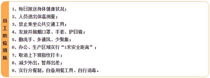 2020年2月1日,公司領導層研究制定疫情防控保障工作方案,并迅速組織落實,為廣大職工健康安全和2月10日的復工復產提供了堅強保障。