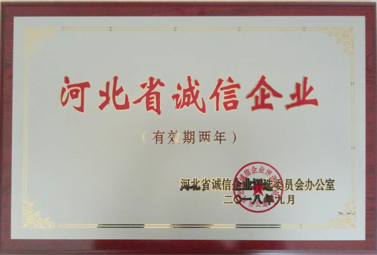 我司榮獲“河北省誠信企業”榮譽稱號