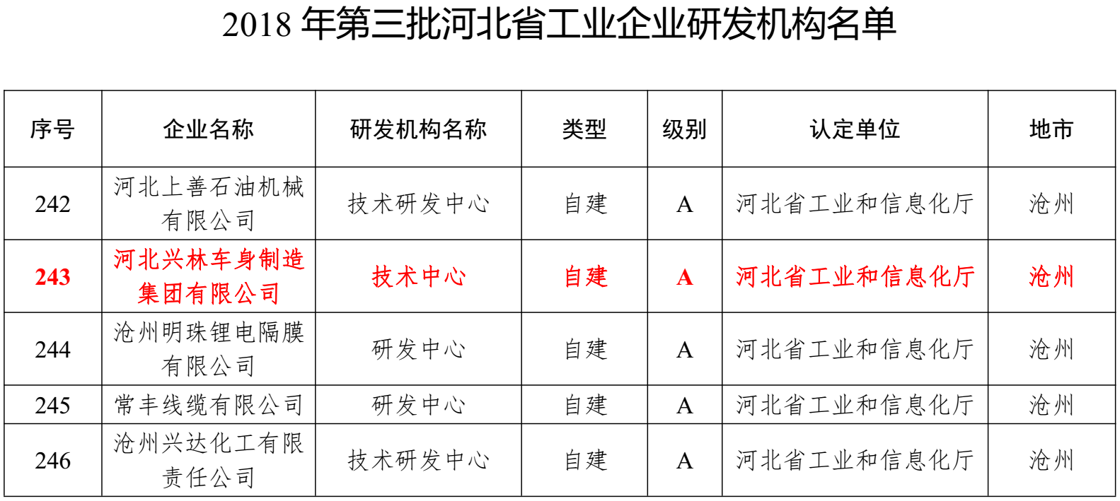 近日獲悉,河北興林車身制造集團有限公司通過2018年第三批A級河北省工業企業研發機構認定,該證書表明對公司研發能力的高度認可。
